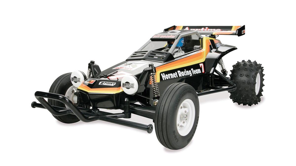 Der Tamiya Hornet ist wahrscheinlich eines der kultigsten und meistverkauften RC-Buggy überhaupt. Er wurde erstmals am 9. Oktober 1984 veröffentlicht und über einen Zeitraum von acht Jahren bis 1992 verkauft. In der Reihenfolge der ersten 100. Tamiya RC-Modelle war der Hornet das 45. Modell, das herausgebracht wurde.