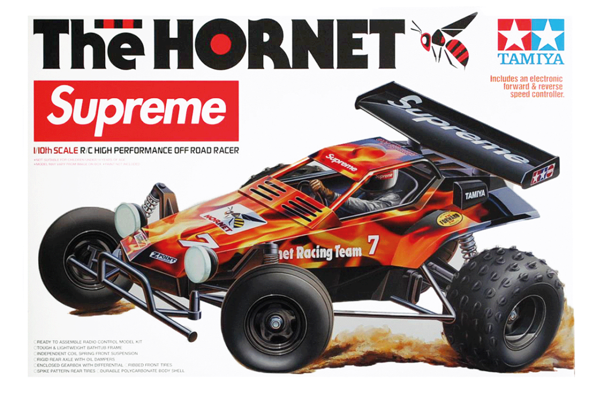 Im Jahr 2004 erschien die Wiederauflage des Hornets bei Tamiya und ist seitdem wieder fest im Standart-Sortiment der Japaner. Das heißt, mit Unterbrechung wird dieses RC-Modell über 28 Jahren aktiv verkauft. Auch gab es immer wieder einmal Sondermodelle von Tamiya. Im Jahr 2012 war es der Hornet von Jun Watanabe (58527) und im Jahr 2018 gab es das Sondermodell der Hornet Supreme (94211) der New Yorker Marke „Supreme“. Die Unterschiede der Supreme lagen in den flammenden Aufklebern und schwarzen Rädern. Offensichtlich wurde das Dekordesign der EVO-Version von der Supreme-Hornet inspiriert.