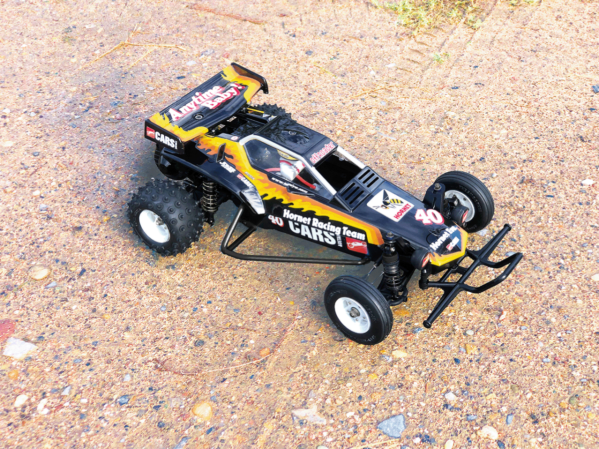 Der Tamiya Hornet ist wahrscheinlich eines der kultigsten und meistverkauften RC-Buggy überhaupt. Er wurde erstmals am 9. Oktober 1984 veröffentlicht und über einen Zeitraum von acht Jahren bis 1992 verkauft. In der Reihenfolge der ersten 100. Tamiya RC-Modelle war der Hornet das 45. Modell, das herausgebracht wurde.
