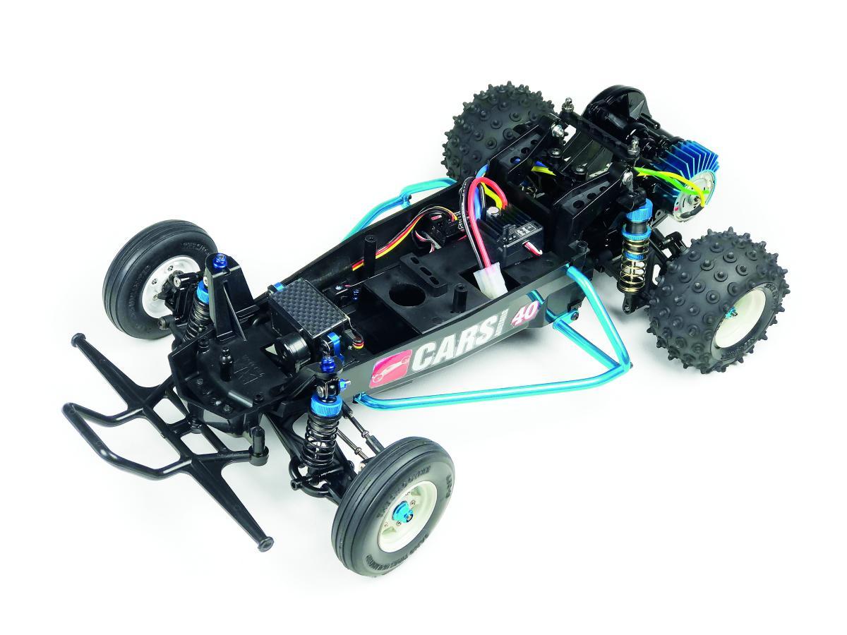 Aber welche Faszination steckt hinter diesem erfolgreichen Konzept? Das Erste, was man von einem Tamiya-Modell früher im Modellbaushop sah, war der große, weiße Verpackungskarton mit einer höchst dynamischen Grafik vorne drauf. Damit zogen die Japaner schon einmal die Blicke auf ihre Modelle. Der Hornet schließlich war die Tuning-Variante des beliebten Einsteigerbuggys Tamiya Grasshopper, der ebenfalls 1984 erschienen war. Auch sah er deutlich aggressiver aus, war klar schneller dank größerem Motor. Der Grasshopper hatte einen 380er-Motor und der Hornet einen 540er-Motor. Er hatte das bessere Fahrwerk bedingt durch hintere Öldruckstoßdämpfer. Er hatte die griffigeren Reifen und einen niedrigeren Schwerpunkt dank leichter Polykarbonat-Karosserie.